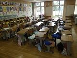 一次避難では教室の机の下に避難し、二次避難では校庭へ移動しました。