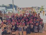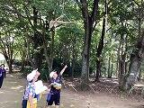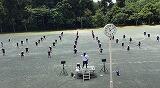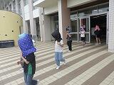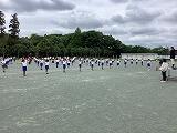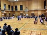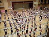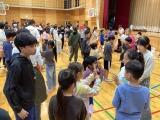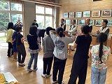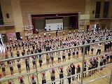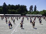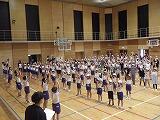 「ダイナミック琉球」という曲にあわせて沖縄の民謡であるエイサーに挑戦します。