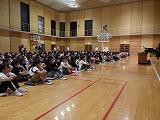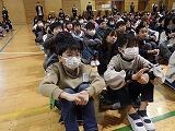 3学期の始業式が始まりました。校長先生の話です。みなさん1月の始業式の話を覚えていましたね。