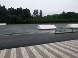 夜から朝にかけての雨により、水はけのよい校庭でもさすがに水たまりが残りました。