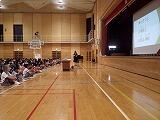 続いて、2月の生活目標です。「感謝の気持ちを伝えよう」を児童会が中心となって話ました。