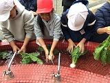 子どもたちは、柏市の自慢はかぶ、ねぎ、ほうれん草の三大野菜だと考え、10月から三大野菜を育てています。