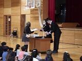 校内書き初め大会の表彰です。各学年から金賞に選ばれた児童が呼名されました。