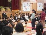 6年生は歓迎の言葉とお花のプレゼント、手遊び歌の発表をしました。