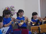 「コラール」「ひまわり」「彼こそが海賊」「宝島」「おどるポンポコリン」を演奏しました。息の合った演奏が藤ヶ谷区民館に響き渡りました。