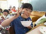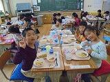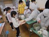今日は1年生の初めての給食でした。6年生がお手伝いに来てくれました。