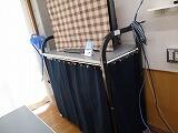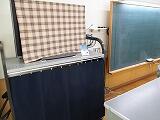 視覚刺激を軽減するためにテレビのカバーを無地のものに替えています。6年生がミシンを使って縫いました。