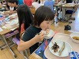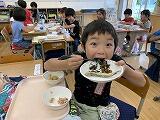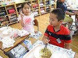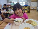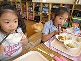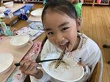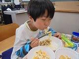 今日のメニューは肉味噌そば、中華サラダ、スコーンでした。みんなおいしそうに食べていました。