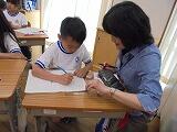 5年生では版画に取り組んでいます。早くできたら、友だちにやり方を教えました。