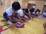 5年生は万国旗の準備をしました。長いロープやちょうちょ結びに苦戦しながら頑張りました。