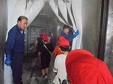本校では、視覚刺激軽減の手立ての一つとして、棚にカーテンをつけることとしました。今日は、そのカーテンを作る日でした。カーテンづくりミシンボランティアのみなさんに来ていただきました。