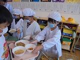 今日のメニューはカレーでした。6年生のおかげで上手に盛り付けることができました。
