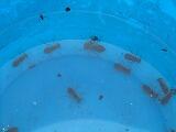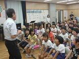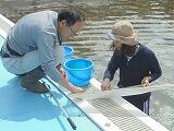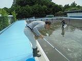 校長先生と理科支援員さんの2人でプールのヤゴ取りをしました。ヤゴのほかにもオタマジャクシなども取れました。児童昇降口前の水槽で見ることができます。