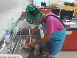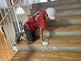 窓枠やレール、雨水の排水口まできれいにしました。集中して取り組んでいます。