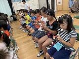 お菓子の絵を使って楽しみながらプログラミングの考え方を学びました。みんな夢中で取り組みました。