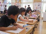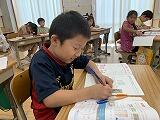 3年生では書写で「光」を書きました。横画、縦画、はらい、はね、点、曲がりなど3年での学習した内容が全て入っているのが「光」です。頑張りました。