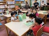 図書館指導員の先生に「ジオジオのかんむり」の読み聞かせをしてもらいました。