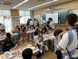 だっこ体験やおむつ付け体験をしました。だっこ体験は最初は恐る恐るでした。しかし、すぐに上手に抱っこできるようになりました。「あかちゃんは重いな」「重いって知らなかった」など感想ができました。
