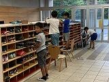 体育館では体育用品の整理をしました。コンビネーションよく取り組みました。