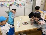 「お~」と歓声が上がる実験でした。実験結果をもとに推論しました。
