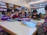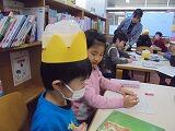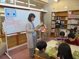図書館指導員の先生に「ジオジオのかんむり」の読み聞かせをしてもらいました。