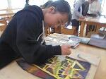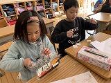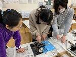 5年生では版画に取り組んでいます。早くできたら、友だちにやり方を教えました。