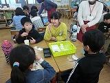 お菓子の絵を使って楽しみながらプログラミングの考え方を学びました。みんな夢中で取り組みました。