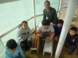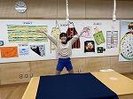 5年生では「ふりこの動き」の学習をしています。今回は理科支援員さんの力を借りて大きな振り子を作りました。2階から多目的ホールに大きな振り子を垂らして実験しました。