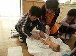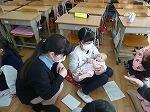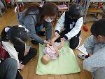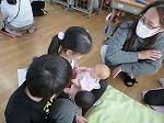 だっこ体験やおむつ付け体験をしました。だっこ体験は最初は恐る恐るでした。しかし、すぐに上手に抱っこできるようになりました。「あかちゃんは重いな」「重いって知らなかった」など感想ができました。