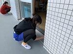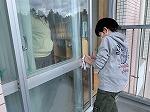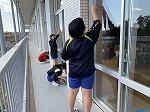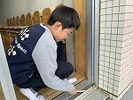 窓枠やレール、雨水の排水口まできれいにしました。集中して取り組んでいます。