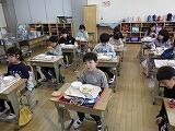 黙食での給食ですが,今年度初めての給食に笑顔があふれていました。