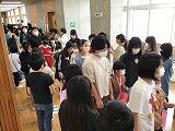 2~5年生が廊下にならび,拍手をして温かい雰囲気の中で入場ができました。