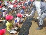 学習の導入では,ただ与えるのではなく,「トマトってどうやってなるのかな?」「何で苗から植えるんだろう?」など発問しながら,子どもたちに「問い」を生み出すことを狙いとして行います。