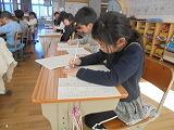 メモしたお手本を引き寄せ、一字一字丁寧に書いていました。その態度は最高学年にふさわしいものでした。