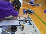 風早南部小では、毎年、体育館で書き初めの練習を行います。今年も書の専門家である綾部久美子先生をお招きしてご指導していただきました。どの学年も真剣に取り組みました。