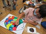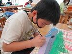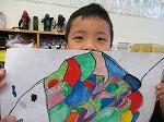 1年生の図工の様子です。楽しく虹色の魚の絵をかきました。
