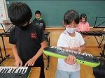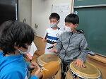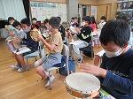 5年生ではいろいろな楽器を使い、リズムアンサンブルの学習をしています。いつも楽しく盛り上がっています。