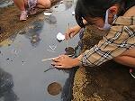 6年生理科「土地のつくりと変化」の学習の様子です。砂と泥、土などを混ぜたものを流水で流して地層ができる様子を観察しました。