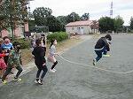 風南小ではリズム縄跳びに取り組んでいます。業間休みは全校で行っています。