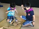 泥めんこや千代紙ろうそくの体験をしている様子です。