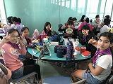 5年生のミシン学習の様子です。保護者の方も手伝いに来てくださいました。