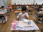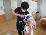 給食のときの着替えの様子です。