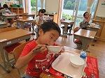 給食も前を向いて食べています。久しぶりの給食を味わいました。