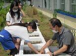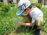 理科の様子です。敷地内で観察をしました。小さなバッタや花を見つけました。