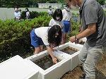 5年生では稲の栽培をはじめました。大きな発泡スチロールの田んぼを作りました。