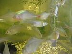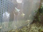 テナガエビ、エンゼルフィッシュの稚魚が新しく仲間に入りました。 ザリガニが脱皮しました。タイリクバラタナゴも元気です。