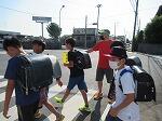 地区児童会の様子です。集団登下校するためのルール作り、リーダー決め、並び方や歩き方の確認などをしました。