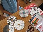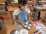 ベンハムのこま作りも行いました。白黒模様のこまなのに、回すと赤や黄色の色が見えました。