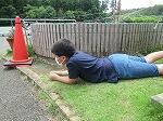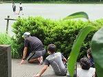 5年生は缶蹴りに夢中です。作戦を立てて本格的です。