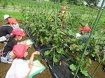 実がついていたり、花が咲いていたり、生長していてみんな驚いていました。実をさわったり、においをかいだり熱心に観察しました。